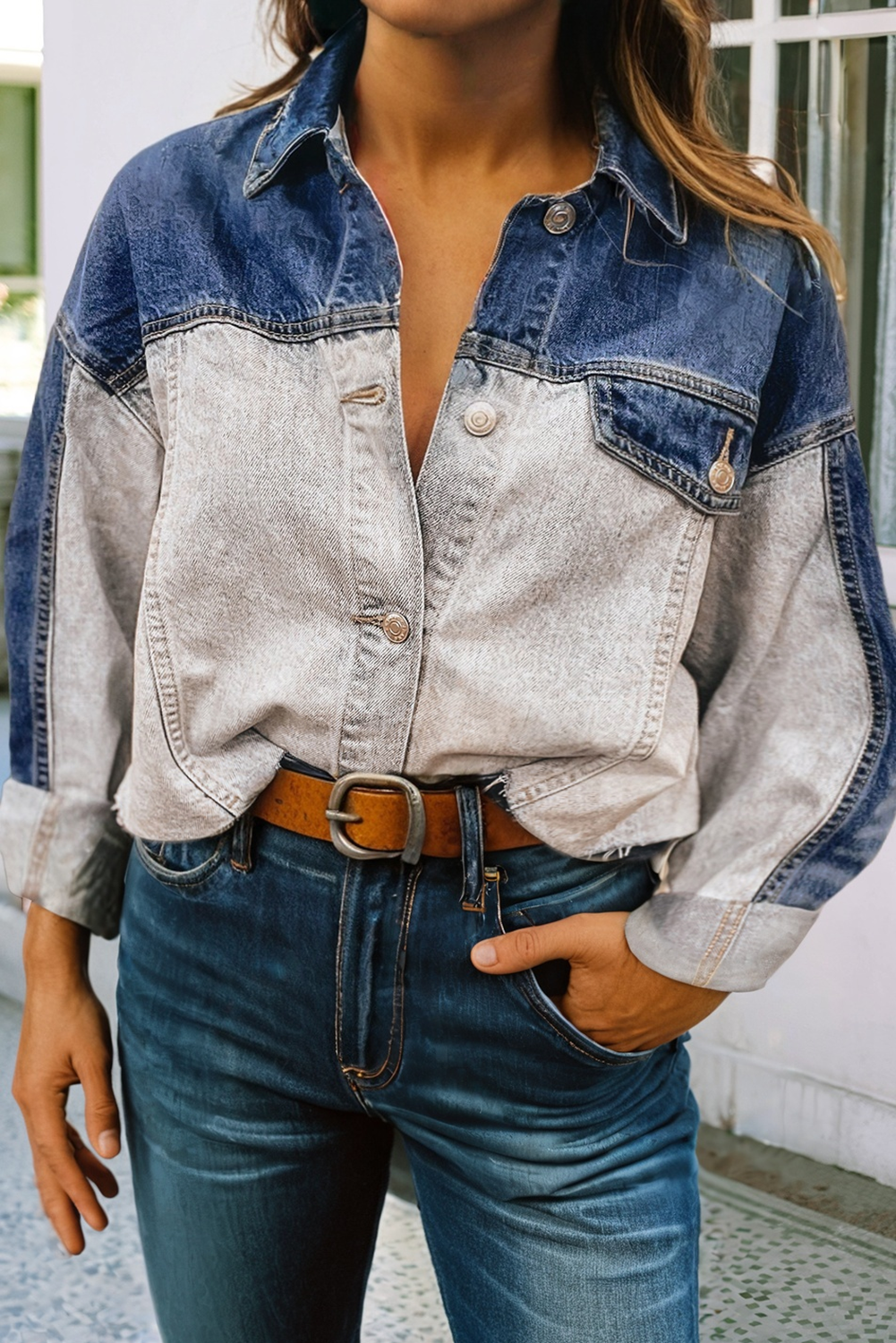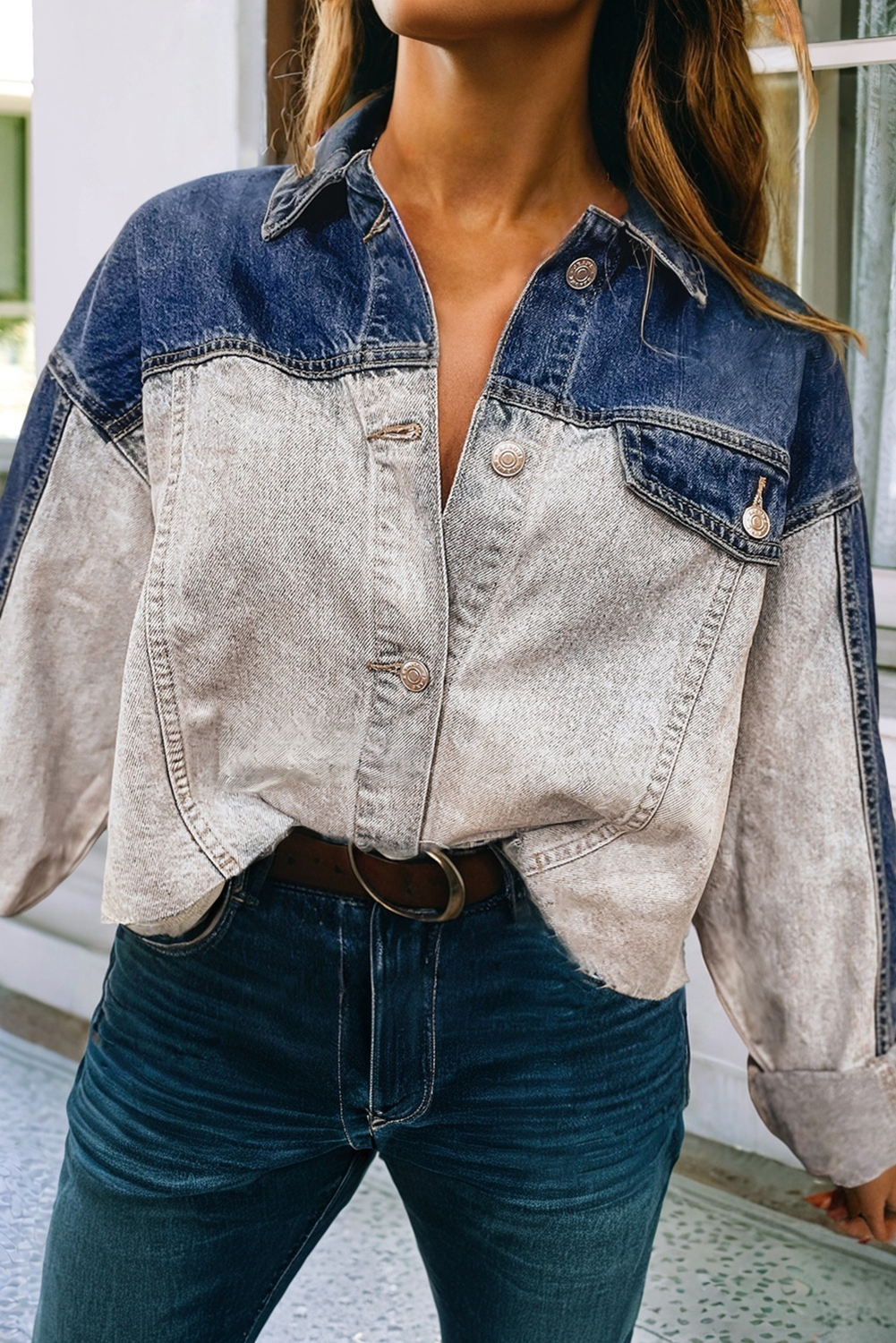 Denim with a twist. This two-tone jacket features a washed contrast design that blends casual cool with a modern edge. The button-front closure and chest pockets keep it classic, while the relaxed fit makes it the perfect year-round layering piece.